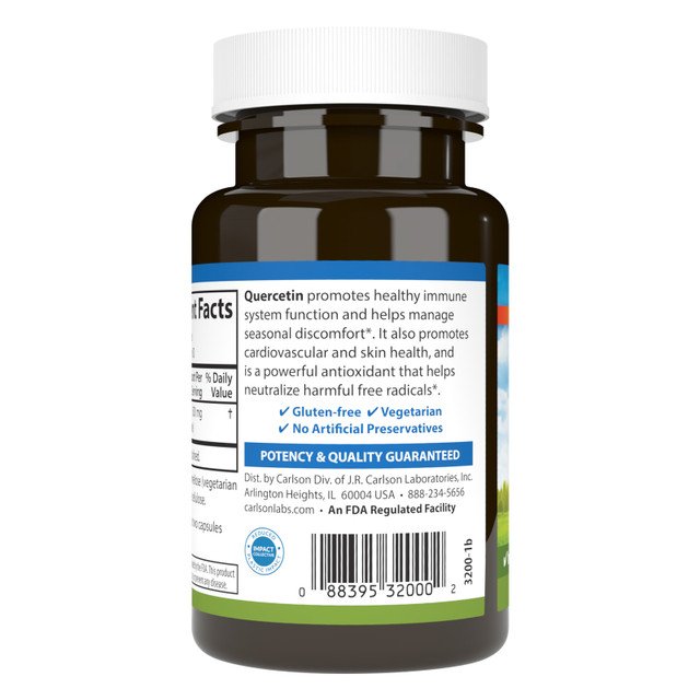 Кверцетин — мощный биофлавоноид, содержащийся в кожуре винограда, красном луке, яблоках и зеленом чае. Он способствует здоровому, нормальному иммунному ответу и помогает справиться с сезонным дискомфортом. Кверцетин также поддерживает здоровье сердечно-сосудистой системы и кожи и является мощным антиоксидантом, который помогает нейтрализовать вредные свободные радикалы. Одна порция содержит 500 мг кверцетина в вегетарианских капсулах. Carlson Quercetin проверен лабораторией, зарегистрированной FDA, на эффективность и качество.