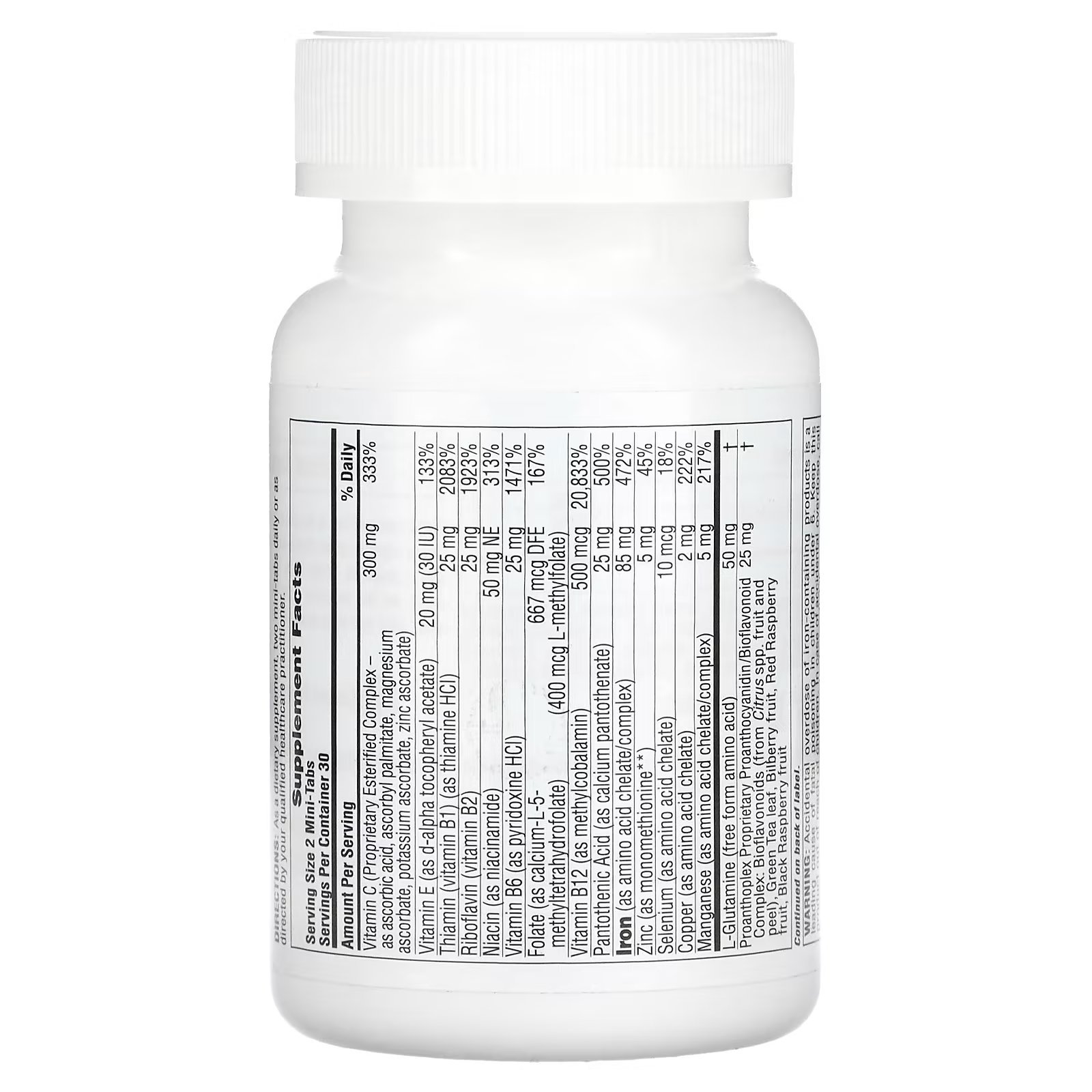 | Витамин C (запатентованный эстерифицированный комплекс в виде аскорбиновой кислоты, аскорбил пальмитата, аскорбата магния, аскорбата калия, аскорбата цинка) | 300 мг | 333% |