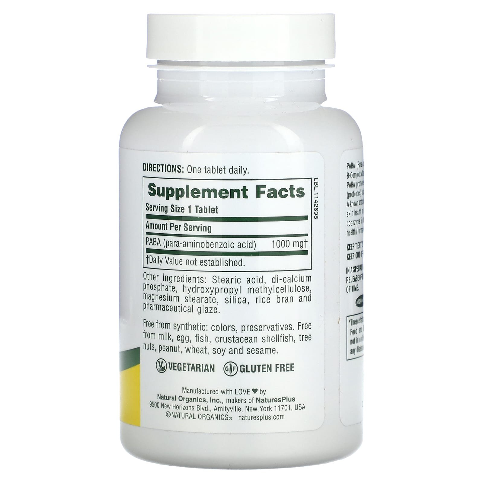 NaturesPlus, PABA ПАБК с замедленным высвобождением, 1000 мг, 60 таблеток