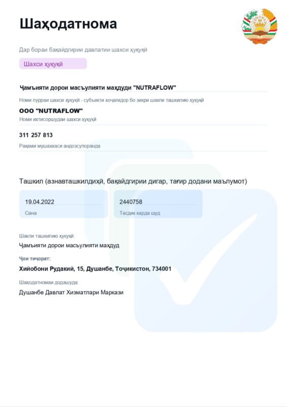 Начав с небольшого ассортимента и двух партнёров-аптек, за четыре года мы выросли в одного из ведущих дистрибьюторов нутрициональных добавок в стране. Сегодня NutraFlow — это надёжное имя, которому доверяют аптеки, фитнес-клубы и тысячи покупателей по всему Таджикистану.