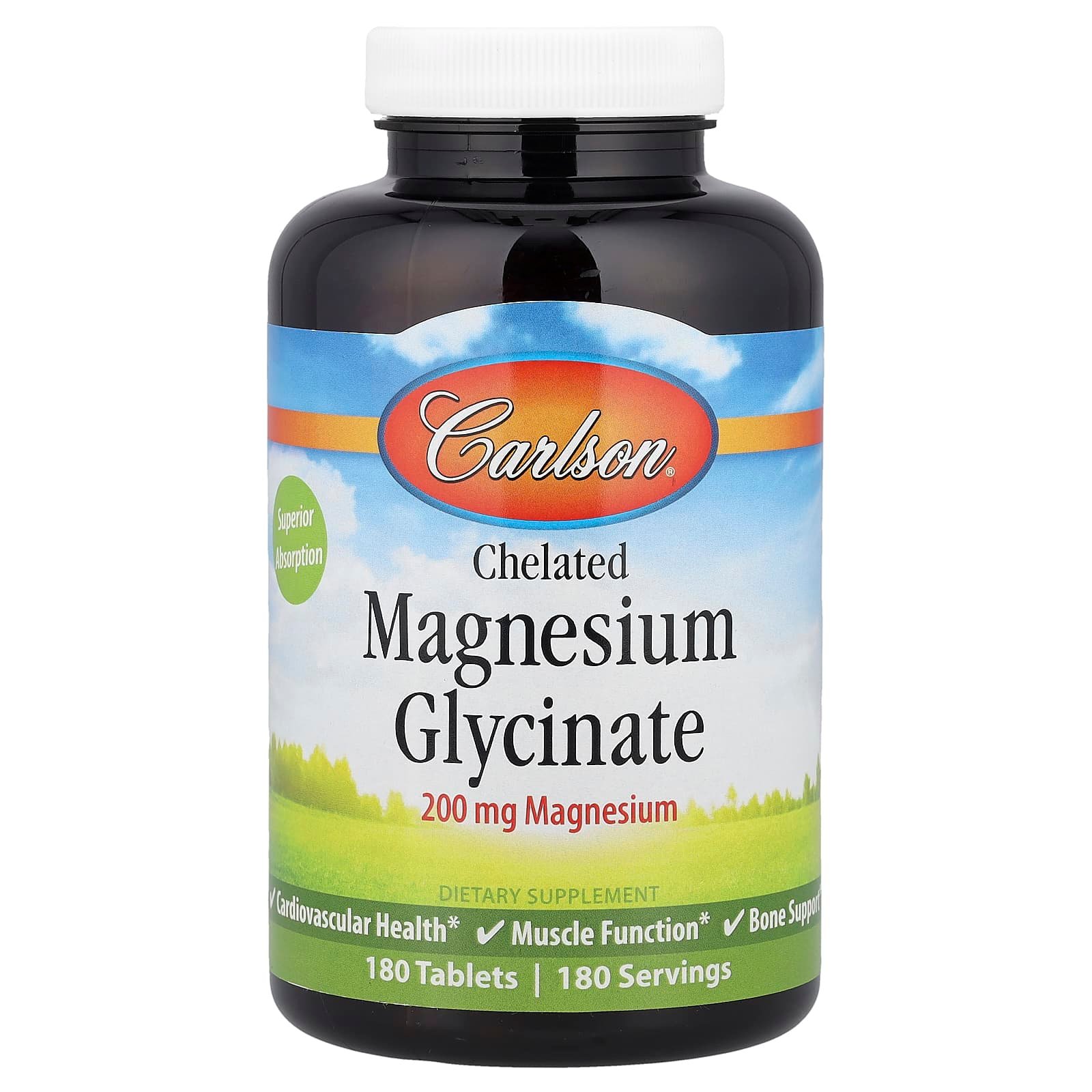 Carlson, Хелатный глицинат магния, 200 мг, 180 таблеток