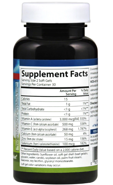 Carlson — производим высококачественные пищевые добавки с 1965 годаЗагрязнение окружающей среды, вдыхание дыма и даже наше собственное тело могут производить вредные свободные радикалы. ACES+Zn содержит мощные антиоксиданты витамины A, C и E, а также селен и цинк для усиления поддержки иммунной системы и защиты организма от повреждения клеток, вызванного свободными радикалами.